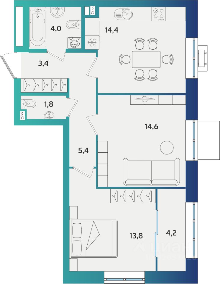 Продаётся 2-комнатная квартира в строящемся доме (Дом А-4.2), срок сдачи: IV-кв. 2026, общей площадью 61.6 кв.м., на 1 этаже. Новый жилой комплекс "Экополис А4-1" от застройщика "ГК АСПЭК-Домстрой" расположен по адресу город Альметьевск, Объездная улица.