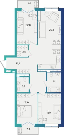Продаётся 3-комнатная квартира в строящемся доме (Дом А-4.2), срок сдачи: IV-кв. 2026, общей площадью 91.48 кв.м., на 7 этаже. Новый жилой комплекс "Экополис А4-1" от застройщика "ГК АСПЭК-Домстрой" расположен по адресу город Альметьевск, Объездная улица.