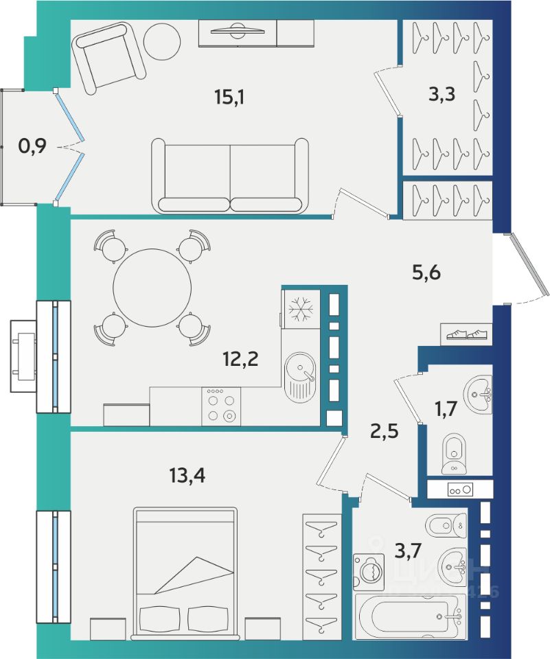 Продаётся 2-комнатная квартира в строящемся доме (Дом А-4.2), срок сдачи: IV-кв. 2026, общей площадью 57.17 кв.м., на 6 этаже. Новый жилой комплекс "Экополис А4-1" от застройщика "ГК АСПЭК-Домстрой" расположен по адресу город Альметьевск, Объездная улица.