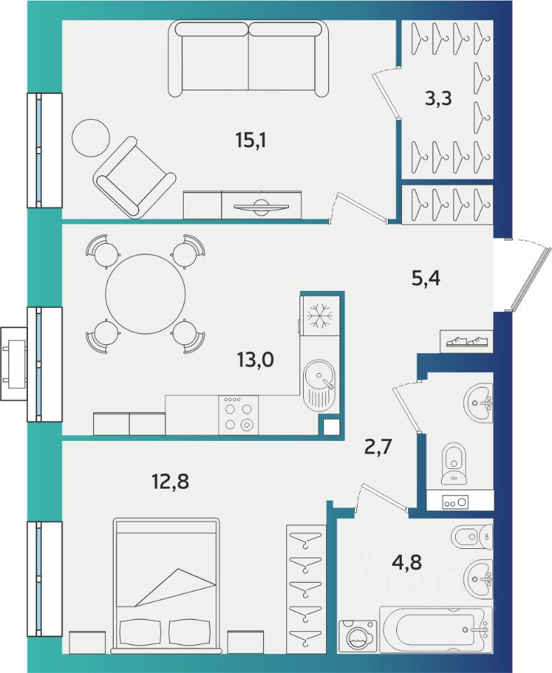 Продаётся 2-комнатная квартира в строящемся доме (Дом А-4.2), срок сдачи: IV-кв. 2026, общей площадью 58.4 кв.м., на 1 этаже. Новый жилой комплекс "Экополис А4-1" от застройщика "ГК АСПЭК-Домстрой" расположен по адресу город Альметьевск, Объездная улица.