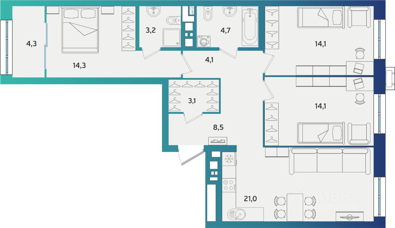 Продаётся 3-комнатная квартира в строящемся доме (Дом А-4.2), срок сдачи: IV-кв. 2026, общей площадью 91.5 кв.м., на 12 этаже. Новый жилой комплекс "Экополис А4-1" от застройщика "ГК АСПЭК-Домстрой" расположен по адресу город Альметьевск, Объездная улица.