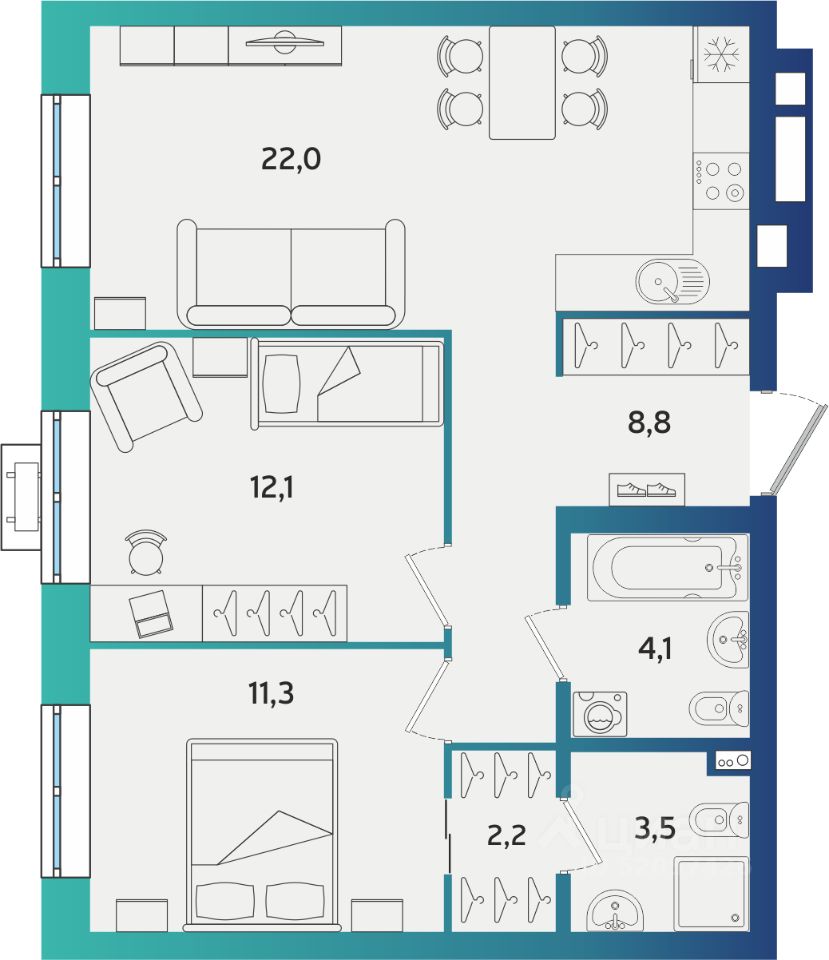 Продаётся 2-комнатная квартира в строящемся доме (Дом А-4.2), срок сдачи: IV-кв. 2026, общей площадью 64.1 кв.м., на 1 этаже. Новый жилой комплекс "Экополис А4-1" от застройщика "ГК АСПЭК-Домстрой" расположен по адресу город Альметьевск, Объездная улица.