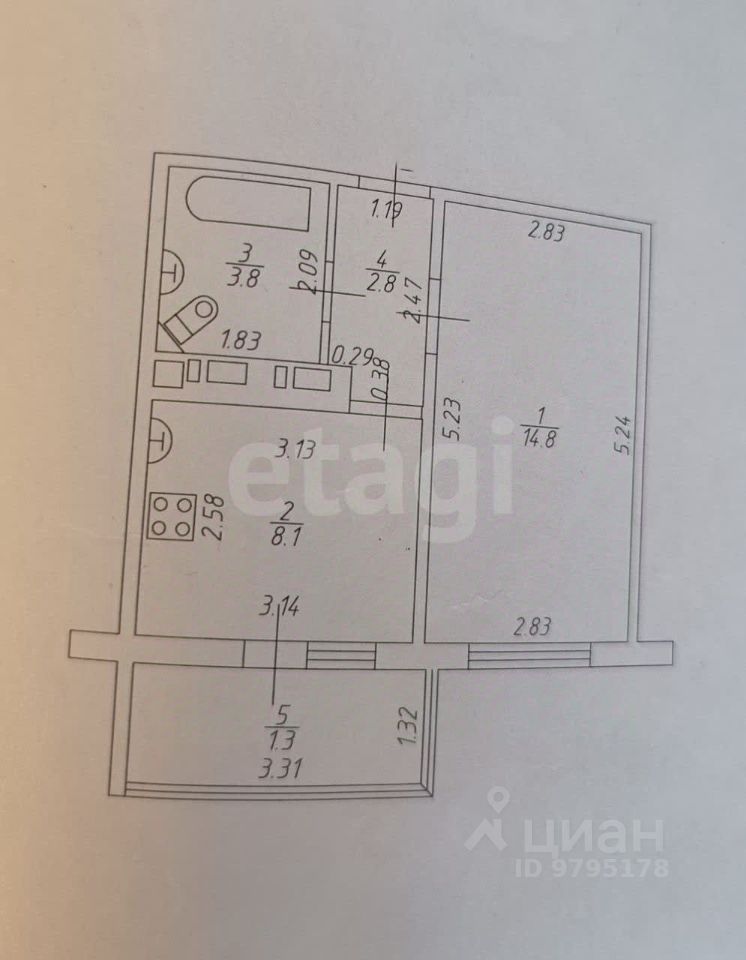 Объект полностью готов к проживанию: ремонт включает практичную планировку с отдельной кухней 8,1 кв.м. и комнатой 14,8 кв.м., а так же с выделенной гардеробной зоной в прихожей. С/У совмещен.