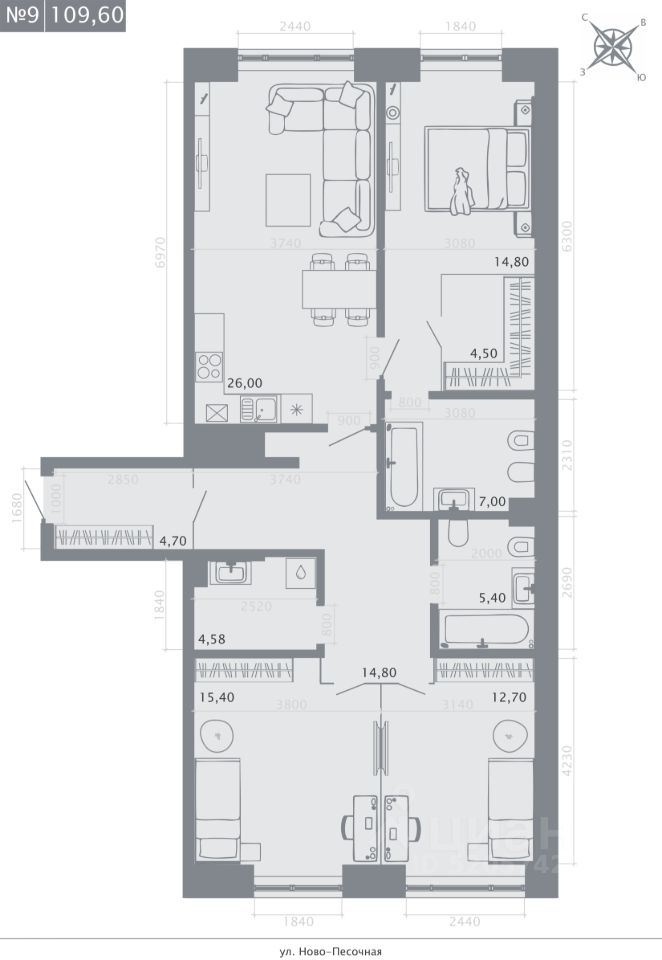 Продаётся 3-комнатная квартира в сданном доме (Дом 2), срок сдачи: IV-кв. 2024, общей площадью 109.86 кв.м., на 2 этаже. Costura Town расположен в историческом районе Казани "Суконная Слобода". Развитая инфраструктура района обеспечивает высокое качество жизни и неограниченные возможности. Торговые и Бизнес-центры, государственные и административные учреждения, лучшие школы и ВУЗы, парки и скверы, кафе и рестораны - всё находится здесь.