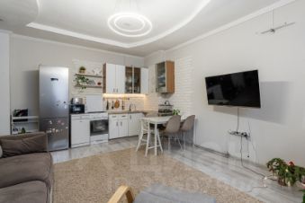 Квартира расположена на 1-м этаже, потолки - 3 метра, просторная кухня-гостиная 24,4 кв.м., две спальные комнаты 13,3 и 13,6 кв.м. соответственно и совмещенный санузел.