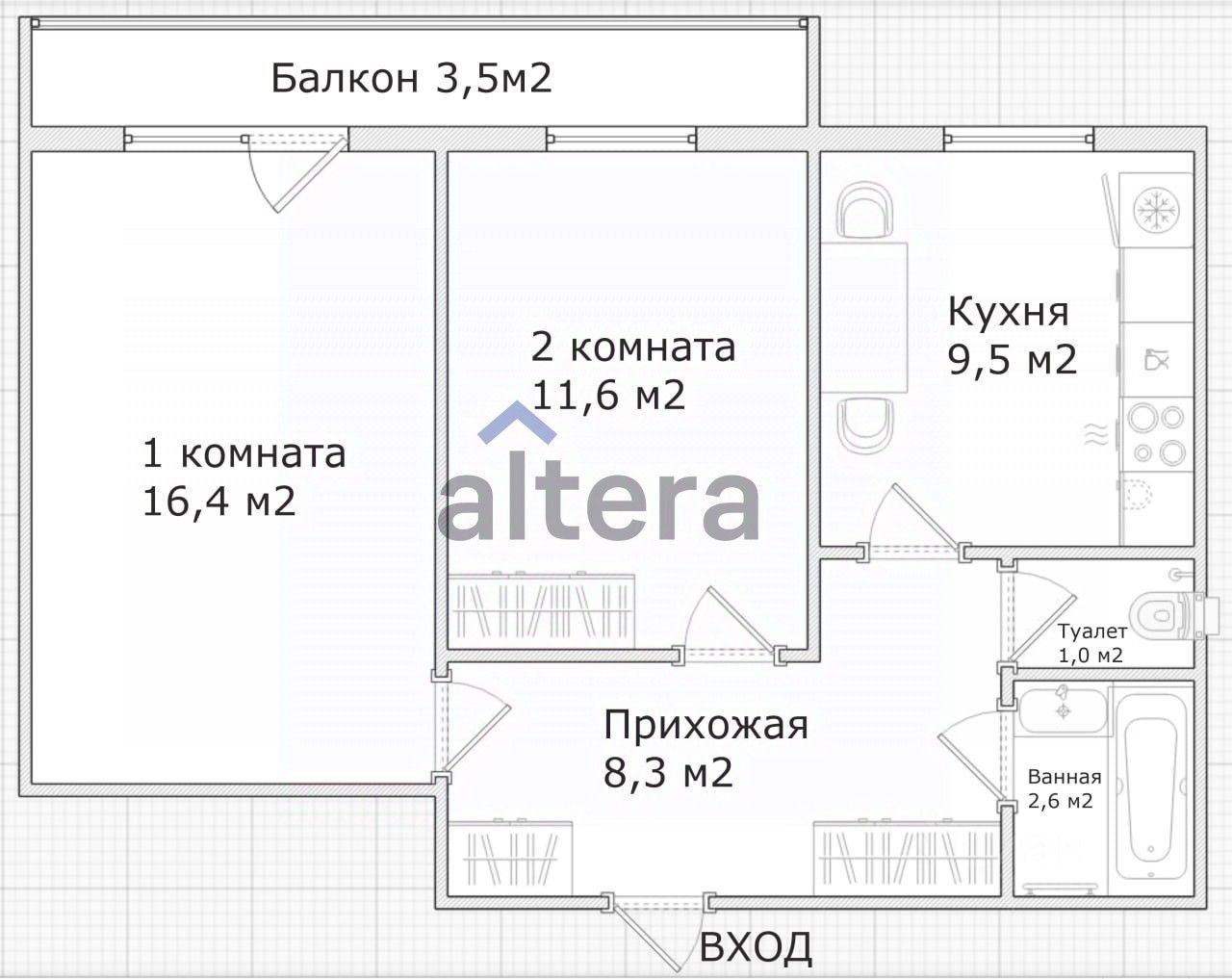 Арт. 128223889 Продаётся уютная двухкомнатная квартира на 7 этаже 9-этажного дома по адресу: