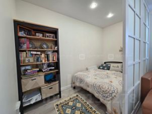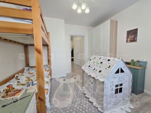 Очень удачная планировка: просторный холл, где свободно разместились несколько шкафов-купе, уютная кухня площадью 10,95 кв.м. с красивым кухонным гарнитуром, встроенной техникой и выходом на застекленную лоджию, большпя гостиная, поделенная на зоны для гостей и отдыха площадью 16,69 кв.м., светлая детская спальня площадью 12,32 кв.м. Санузел в современном кафеле, совмещен. Имеется второй санузел, оборудован под гардеробную.