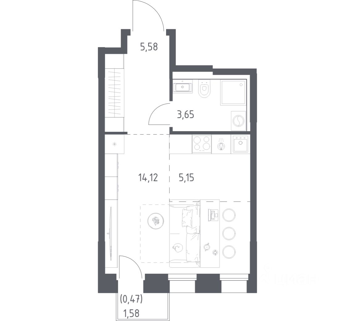 Строим кварталы для жизни с заботой о будущем. Предлагается студия комфорт-класса площадью 28.97 кв.м в корпусе 1КВ на 13-м этаже, в жилом комплексе "Зилант Премьер".