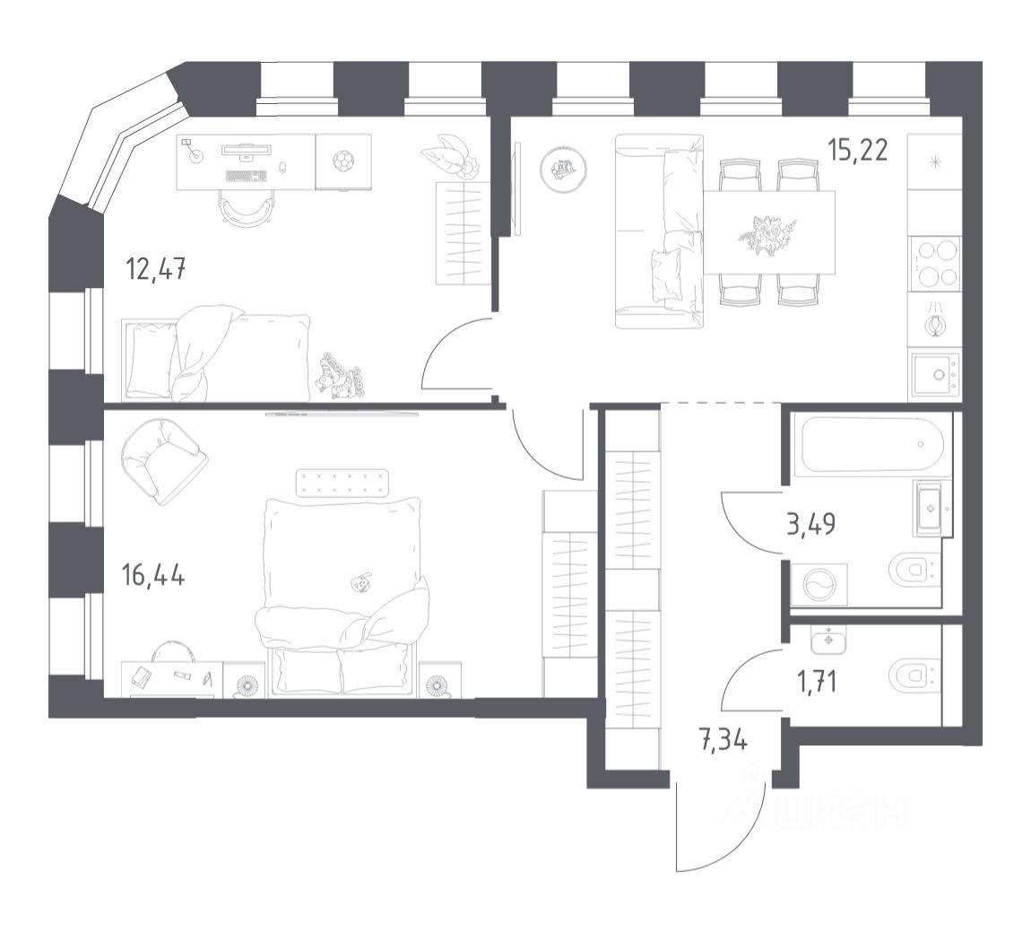 Строим кварталы для жизни с заботой о будущем. Предлагается 2-комнатная квартира комфорт-класса площадью 56.67 кв.м в корпусе 1КВ на 19-м этаже, в жилом комплексе "Зилант Премьер".