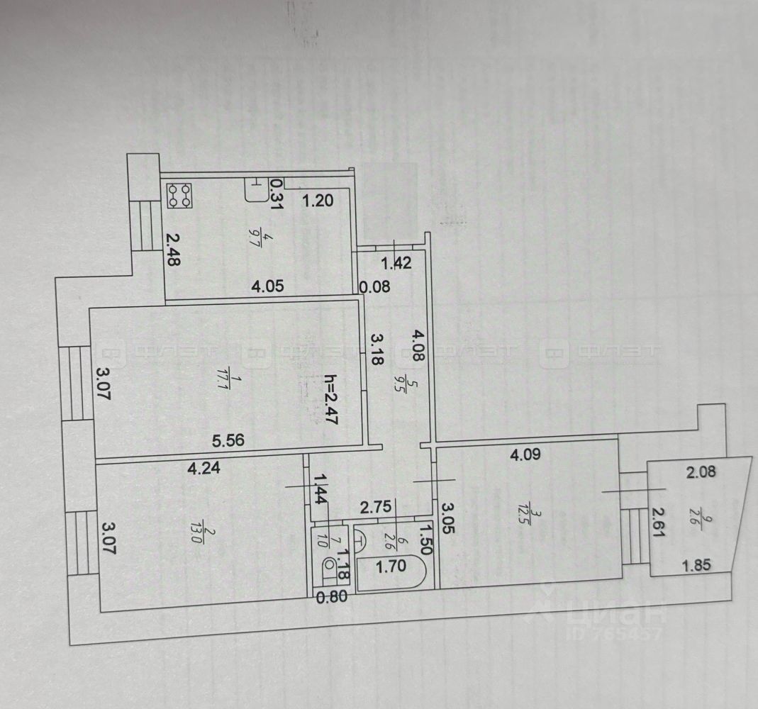 Потолки натяжные , на полу ламинат , хорошие новые двери ,
