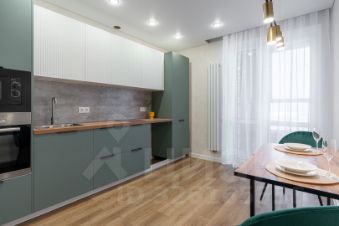 - Установлен кухонный гарнитур со встроенной техникой (микроволновая печь, духовой шкаф, варочная поверхность)