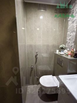 Современный санузел с качественной сантехникой.