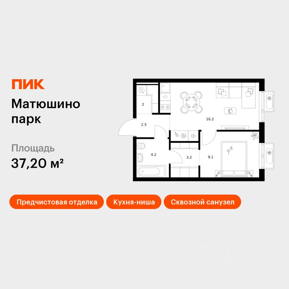 Продаётся 1-комн. квартира площадью 37,2 кв.м на 17 этаже 17 этажного дома (Корпус 3, Секция 1) проекта ПИК Матюшино парк. Светлый просторный подъезд на уровне земли, функциональная планировка, большие окна, предчистовая отделка.