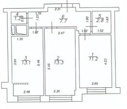 - продуманная эргономичная планировка (общая площадь 49,3 кв.м., кухня-гостиная 13,1 кв.м., зал 13,3 кв.м., спальня 11,2 кв.м., раздельный санузел, просторный холл 7,7 кв.м.);