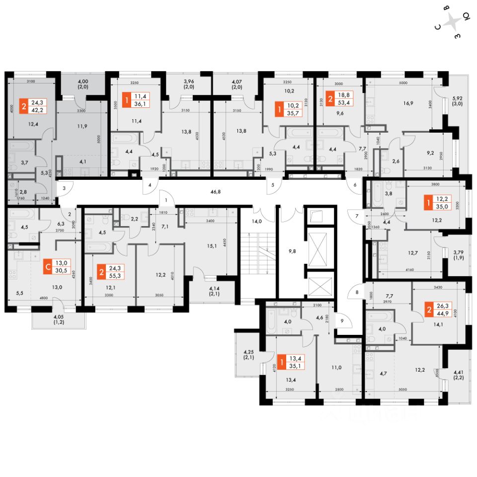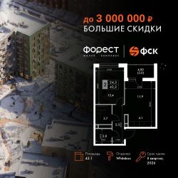 Продаётся 2-к квартира номер 101 общей площадью 42.1 кв.м. на 5-м этаже 6 этажного здания. Отделка Whitebox. Цена с учётом скидки.