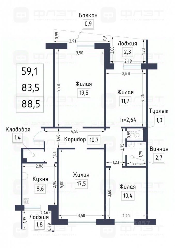 Стоимость ниже среднерыночной для 4комнатных квартир в этом районе.
