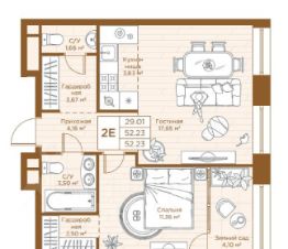 Современная квартира в премиум-доме класса de luxe, 52,5 кв.м.