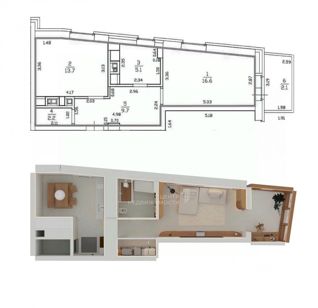 Просторная квартира 43,3 м² с дизайнерским ремонтом