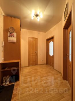 Просторный зал, большая кухня, гардеробная для хранения вещей, с/у в кафеле, лоджия обшита и застеклена.