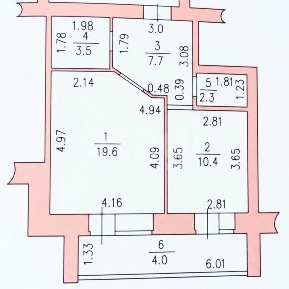 Комната — 19,6 м², светлая и уютная, правильной формы.