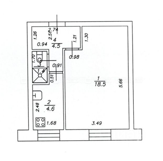 Общая площадь квартиры 29 кв.м, жилая площадь - 18,5 кв.м.