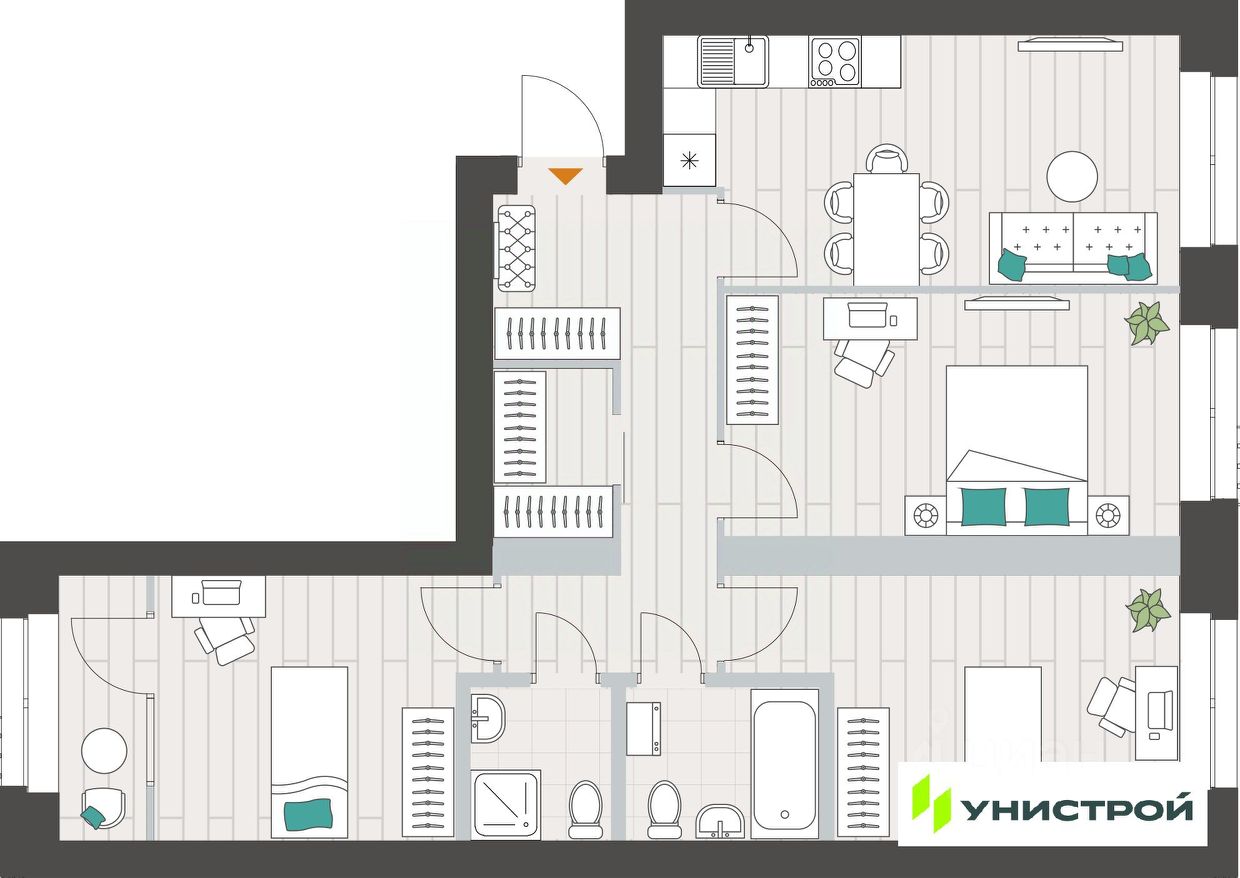 Унистрой—федеральная девелоперская компания «Унистрой», реализующая проекты в Казани, республиках Татарстан и Башкортостан, Ленинградской и Самарской областях. Компания работает на рынке с 1996 года и специализируется на развитии жилой и коммерческой недв...