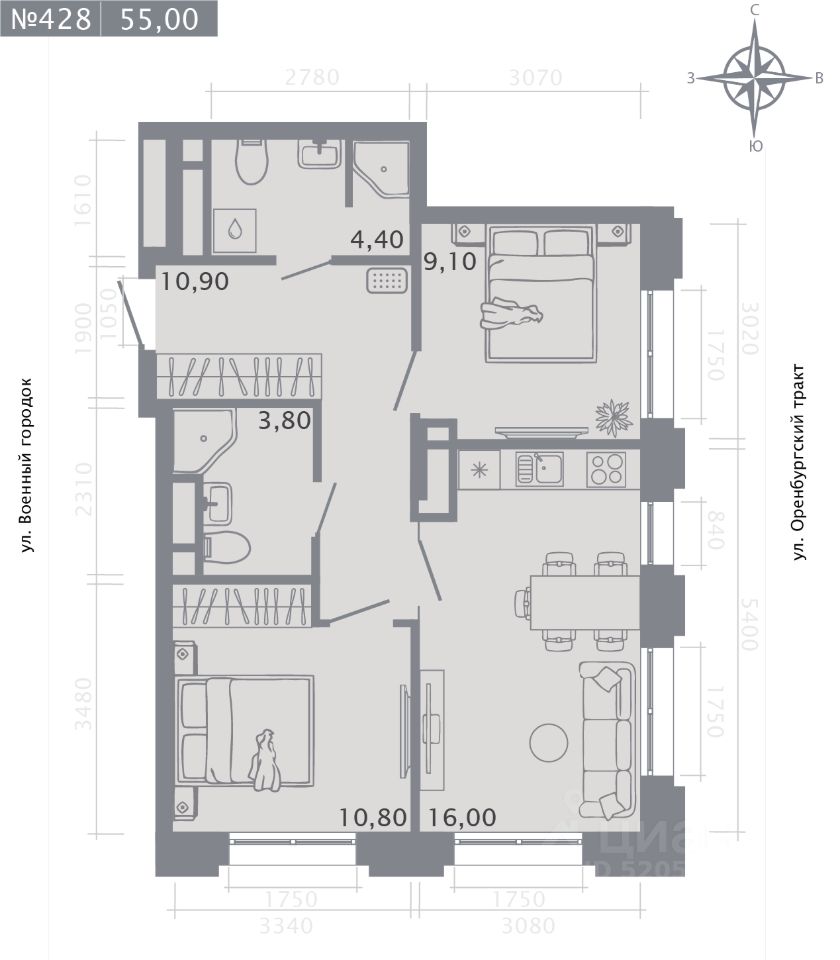 Продаётся 2-комнатная квартира в строящемся доме (Корпус 1), срок сдачи: II-кв. 2028, общей площадью 55 кв.м., на 8 этаже. Новый жилой комплекс "Оригана" от застройщика "КамаСтройИнвест" расположен по адресу: Россия, Республика Татарстан, Казань, улица Оренбургский Тракт