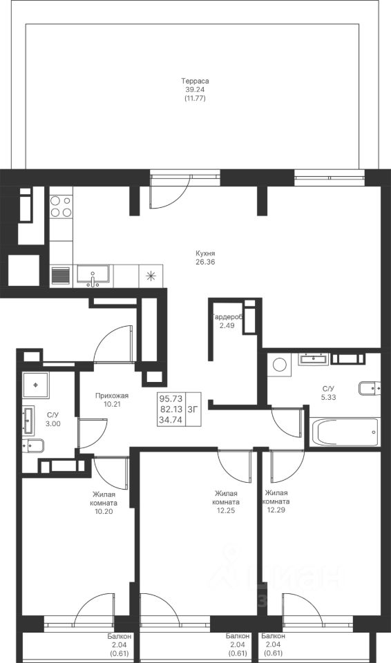Продается 3-комнатная квартира 456 площадью 95,73 кв.м на 8 этаже в строящемся доме проекта "Мой Ритм" компании "Ак Барс Дом".