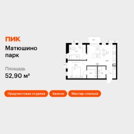 Продаётся 2-комн. квартира площадью 52,9 кв.м на 9 этаже 9 этажного дома (Корпус 4, Секция 1) проекта ПИК Матюшино парк. Светлый просторный подъезд на уровне земли, функциональная планировка, большие окна, предчистовая отделка.