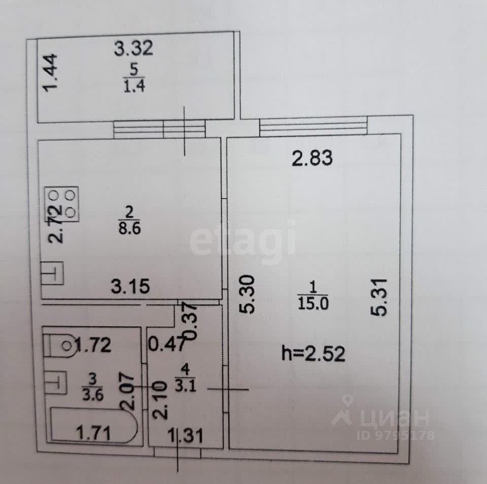 Площадь кухни8,6 м²