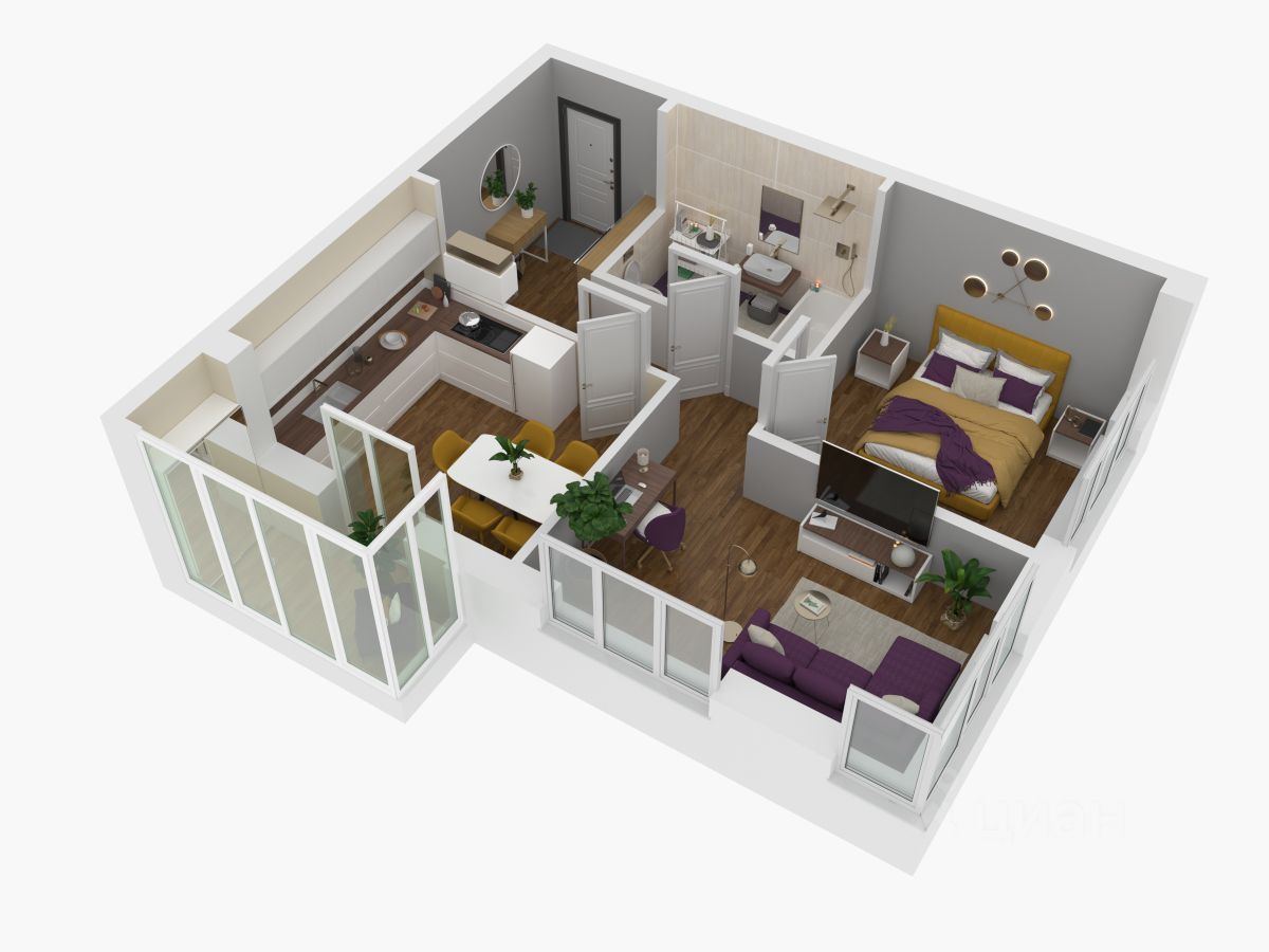 Продается 2 комнатная квартира 2 общей площадью: 52.3 кв.м. на 1 этаже.