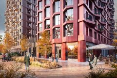 Квартира расположена в 15-этажной башне медного цвета с треугольными эркерами. Архитектурное обрамление доминанты образуют корпуса, выполненные в натуральных тонах светлого камня.