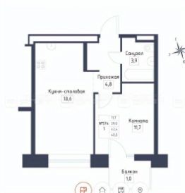 Отличная планировка: большая квадратура, кухня-гостиная 18,6 кв.м.-мечта любой хозяйки