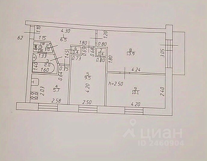 Комнаты: 13 кв. м, 10.1 кв. м и 9.5 кв. м.