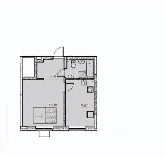 Общая площадь квартиры 38,8кв.м.+ балкон