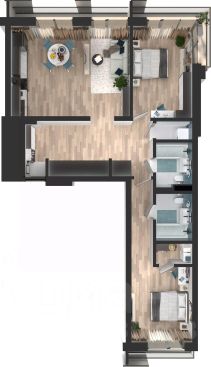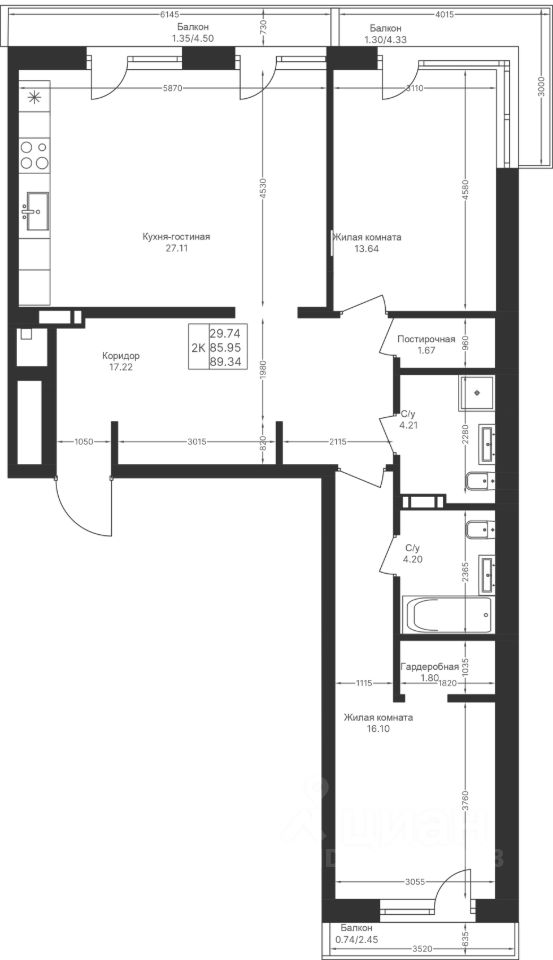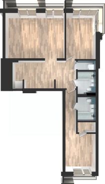 Для хранения вещей в коридоре есть место под шкаф-купе, а удачные пропорции жилых комнат позволят выгодно использовать пространство при расстановке мебели.