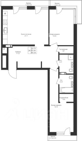Продается 2 Евро-комнатная квартира 75 площадью 89,34 кв.м на 2 этаже в строящемся доме проекта "Мой Ритм" компании "Ак Барс Дом".
