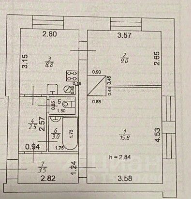 Продаётся двухкомнатная квартира общей площадью 44.00 кв.м. на первом этаже двухэтажного дома. Квартира очень экономичная, имеет кухню площадью 9 кв.м. и сейчас выполнен стандартный ремонт. Мебель остаётся, что делает это предложение ещё более привлекательным и удобным для покупателя.