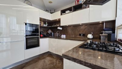 В квартире сделан ремонт из дорогих и качественных материалов. В гостиной, на кухне и коридоре на стенах декоративная штукатурка. Пол - паркетная доска, керамогранит. В каждой комнате установлен кондиционер.
