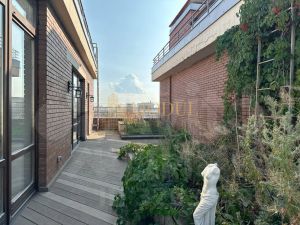 ЖК "Панорама" — это повышенный уровень безопасности и комфорта. Уникальность, этой квартиры в том, что, по сути, это отдельный загородный дом, окружённый террасами с озеленением — на крыше 7-этажного дома. Квартира одна на этаже. Есть возможность сделать полное или частичное остекление террас. Две террасы по 50 кв. М. В квартире сделан современный ремонт, на полу дорогой паркет, подоконники из мрамора, кухня-Итальянская. В просторной кухне есть отдельная постирочная-кладовая. Две спальни с гардеробными. Высокие потолки -3.40, камин, панорамные окна во всех комнатах с выходом на террасы-создают потрясающую атмосферу этой квартиры.