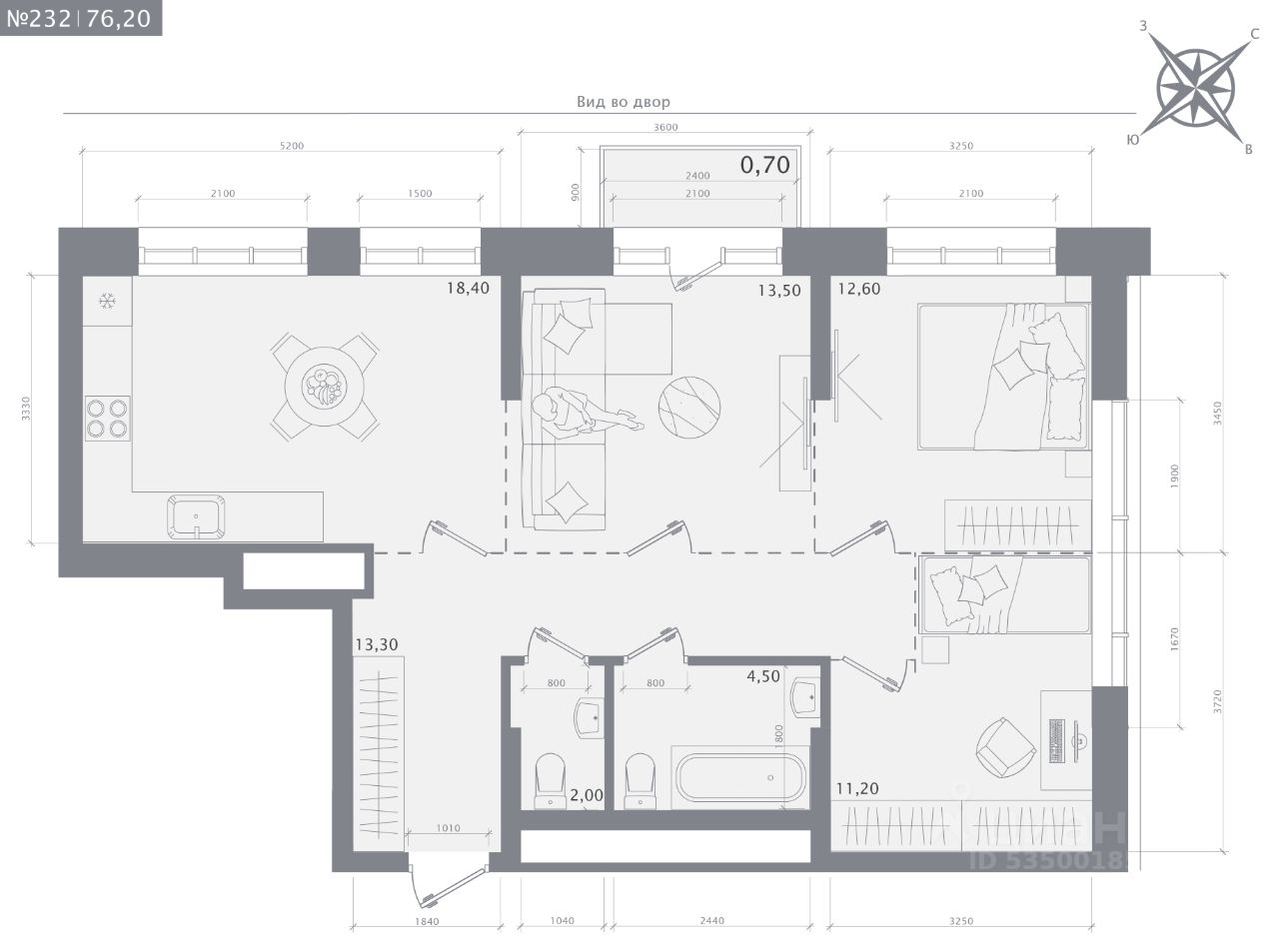 Продаётся 3-комнатная квартира в строящемся доме (Дом 2), срок сдачи: IV-кв. 2027, общей площадью 76.2 кв.м., на 5 этаже.