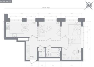 Продаётся 3-комнатная квартира в строящемся доме (Дом 2), срок сдачи: IV-кв. 2027, общей площадью 66 кв.м., на 12 этаже.
