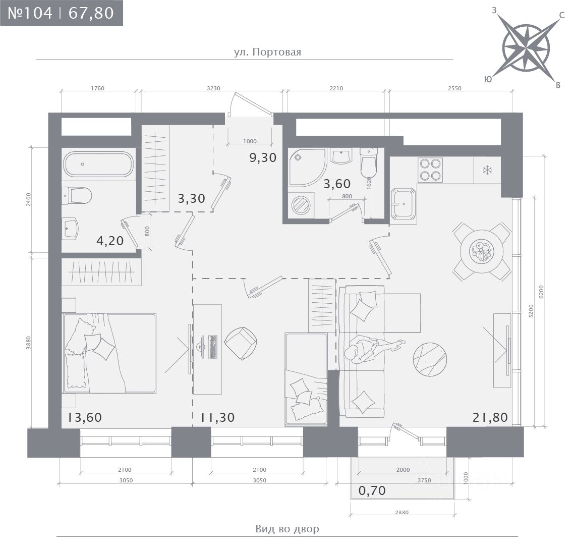 Продаётся 2-комнатная квартира в строящемся доме (Дом 1), срок сдачи: IV-кв. 2027, общей площадью 67.8 кв.м., на 3 этаже.