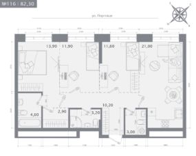 3-комн. квартира, 82,3 м²