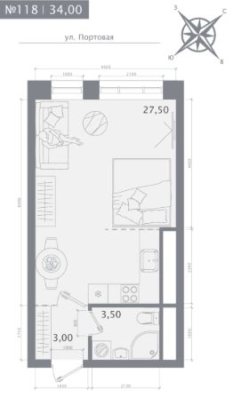 Студия, 34 м²