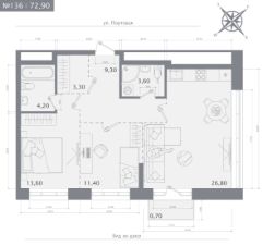 Продаётся 2-комнатная квартира в строящемся доме (Дом 1), срок сдачи: IV-кв. 2027, общей площадью 72.9 кв.м., на 7 этаже.