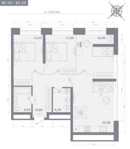 3-комн. квартира, 85,3 м²