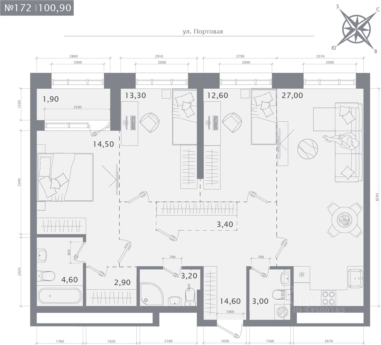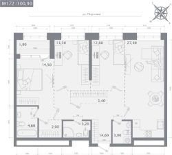 Продаётся 3-комнатная квартира в строящемся доме (Дом 1), срок сдачи: IV-кв. 2027, общей площадью 100.9 кв.м., на 12 этаже.