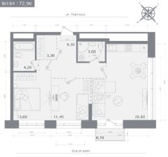 2-комн. квартира, 72,9 м²