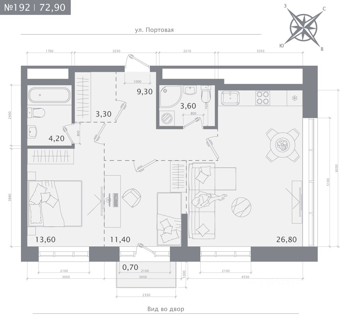 Продаётся 2-комнатная квартира в строящемся доме (Дом 1), срок сдачи: IV-кв. 2027, общей площадью 72.9 кв.м., на 14 этаже.